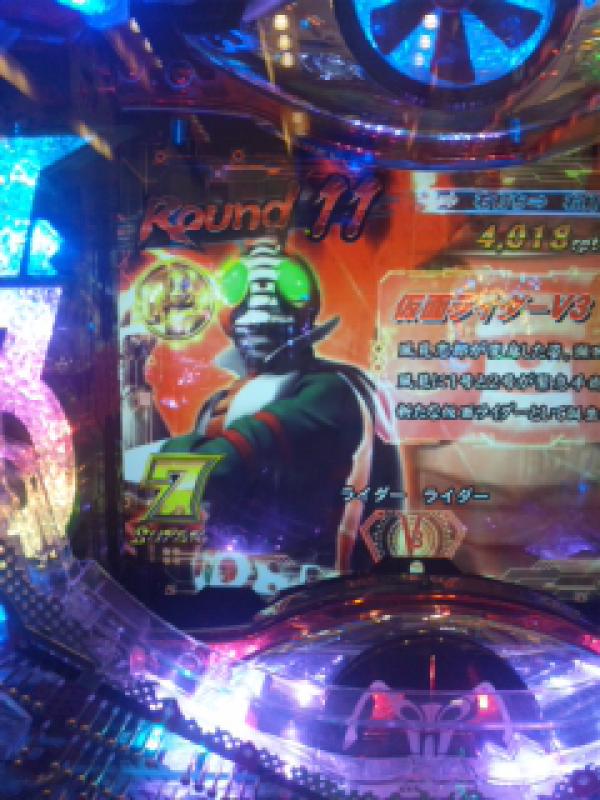 北斗転生で 17K負けて 残りのパッキーは 最近、お仲間が打ってる パチンコV3を 打ってみることに! なんか中途半端は演出から 潜入モードには 良く入るが… まったく発展しない(・.・;) まぁMAX台だし そんな簡単には当たらないよなぁ… 残りわずかなパッキーにて 保留変化の 緑?紫? なんかライダーマンのリーチになったけど あんまり期待出来ないよね!? ん?(・∀・) なんかショッカー群らしきのが出たんだけど! なぬっ( ̄□ ̄;)!! あっさり当たったがな!! こんなんで当たるんだ!? で3連 5R,16R,16R こんなもんなんだ(^_^;) これじゃ納得行かないので続行! ほら! 京楽の台って? AKBもそうだったけど 好調台は、 ラッシュ抜けても 早い回転数で引き戻すイメージがあるんですよ! すると! 30回転くらい後に なんか疑似連の演出が始まったと同時に ハンドルから あの懐かしい感触が!(*^.^*) ま・マジっすか( ̄□ ̄;)!! びっくらこいて 演出を良く覚えてませんが… なんか怪人を倒したのは覚えてます! ハリケーンモードって お仲間がオモロイって言ってたのが良くわかりました♪ あのポコポコのサプライズボタンもオモロイですね♪ 途中でこれって ↓