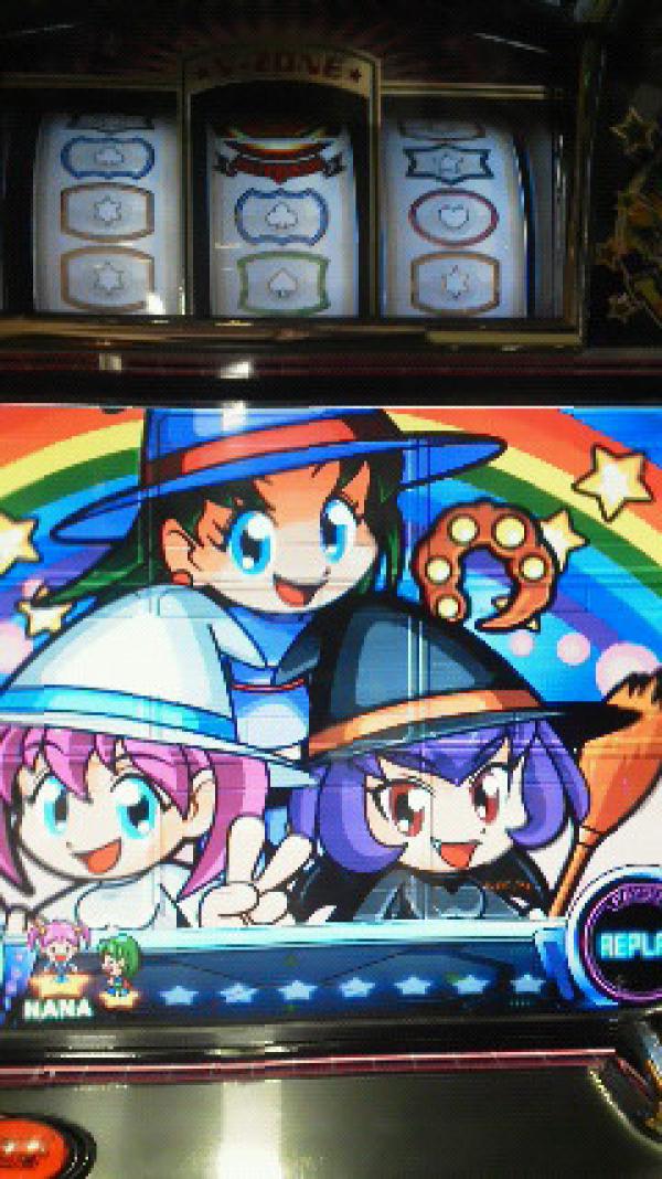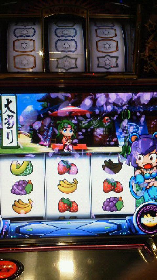 久しぶりの夢夢にてサクサク1000枚ゲットした紫風です だが、ここからが大事なんですよね! 調子に乗って打つと、絶対にのまれてしまいます ので、160回転に、小役が途絶えたので、隣の夢夢へ移動です たしかさっき打ってた方は後にバトルハズレですぐやめてました。 もしかしたら…? が的中 お座り一発当たり またコインが増えたものの、そろそろのまれる予感がしてきました ので、帰りたかった でも、今日は彼のお迎えが無いと帰れない ので、再び左側へ 私が右側を打ってる間に、他の方がBIG1回当たってました。 たしか200回転代で空いてたかな? これも何か演出があった直後です そしたらまたお座り一発当たり と、喜んでいたら ほら始まった! 痛いしっぺ返しが 700回転代にてやっと当たり この後、順調に当たったので、やめたかったけど… やっぱりお迎えが で、とうとう900回転くらいにレギュラー単発 現金まで使ってました。 1400円 やっとお迎えが来て帰りましたとさ と、いう、結局微妙な日でした さ、ここから私が初めてみた演出達です まずはシャッターチャンス中にて