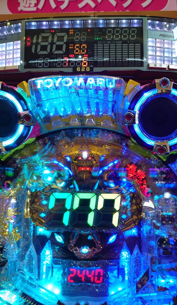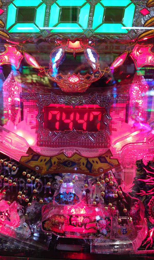 こんばんワァ───ヽ(*゜∀゜*)ノ───イ 昨日は結婚記念日♪トドちゃんとランチへ♪ 毎年、結婚記念日は有休取って昼間デート(*´∇`*) 子供が4人いると2人の時間はないからね(笑) ドンキに買い物、なぜか20Kも遣い( ̄▽ ̄;) 服屋さんに・・・コロナのせいでろくに服屋さんも行けてないし( ;∀;) 昨日1日で100K程散財(T▽T)アハハ で、トドちゃんは毎年有休捨ててるから今日も有休消化。 今日は何すっぺ? 7/7はむかしむかし・・・あたし大負けしたからホールに行くのはあまり好きじゃない・・・ だけど・・・せっかくだしね?2人の時にしか行けないちょっと遠めのホールに出向く事に(笑) 40〜50分車で走ると規模の大きいホールたくさん♪ 機種ラインナップから絞込み、あまり行かない系列店へ。 チャレンジャーだわ( ̄▽ ̄;) でも、回りが悪けりゃすぐ近くに何軒かホールあるし。 ①パチだしね(*´∇`*)大丈夫よ〜 せっかくだからマイホにはない機種がいい! キレパンダリゾート気になりながらホール徘徊してたら? ビッグドリームみたいな台を見つけた! なんだこれ?神の一撃?ロードファラオ? トリセツ読む。 設定付きでメーカー豊丸。うん。あたし好き(*´∇`*) 3段階設定で分母①104②99③79 ヘソ50%でアルティメットボーナス【100時短で1.62を引けだからスルーはなし】ダメな50%は時短なし。 デッドオアアライブタイプね・・・ アルティメットボーナス後は残保留1と時短1の2回転で1.62引けば継続、継続率86%か(*´∇`*) そこまで継続率高くはないがまぁやってみっか(笑) 履歴を見たいがどうやら昨日店休日で移動された台みたい。履歴なんもない(笑) 1Kなんもナス。1.8K投資111回転【最初ストローク位置が定まらず苦戦したが途中から回転率よくなる】 初当たり射止めるもダメな方チ───(´-ω-`)───ン 気を取り直した7回転目。保留変化はないが始動口が赤。 たぶん、赤保留扱い? 当たりを射止めてアルティメットボーナス♪ ヽ( ´ ▽ ` )ノ さぁ10連くらいして下ちぃm(*_ _)m ちなみに右打ち中は5Rと10Rが50%ずつ。7カウント7賞球だから払い出し250発【3当たり】と500発【7当たり】くらい。 無事に6連までするも7しか揃わない(笑)偏る。すでに2400発ある。おもしれぇ〜これ(*´艸`)はえぇ〜