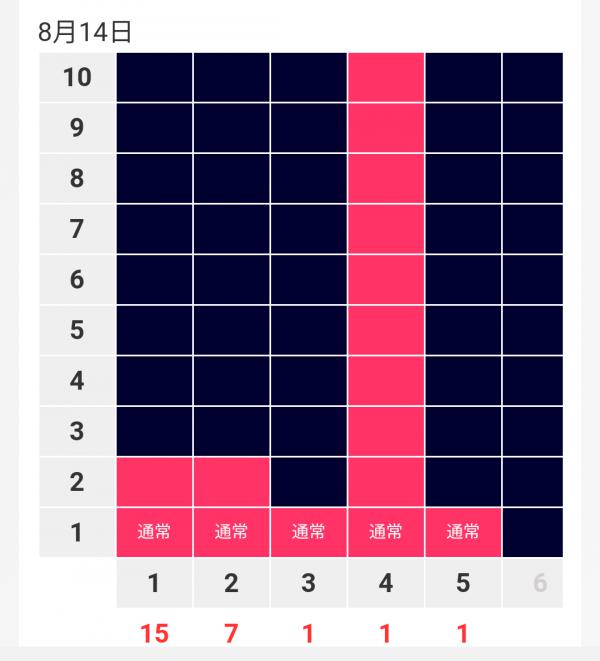 1300回転通常ひーて 113回転やめ台に 1500円で初当たりひーて ラッシュ(≧∇≦)/ 喜ばせといて痛恨のスルー(`ε´) 追い銭5500円で 初当たり2回目(≧∇≦)/ 7連してくれて即やめ上等ヾ(´∇`)ノ そしたらたまげたたまげた(*○o○) 5500円位で 237回転から一撃15連チャン!!! まさか1300回転通常台が 見事なVグラフになるなんて 想像してなかったよ(´・_・`) 多分やめたオタク風の兄ちゃん 台叩いてやめたバツなのかも きっとかなりの 投資してたんだろうな(´・_・`) 気の毒だけど 台は叩いたらダメですよね(o^^o) 心に余裕を持たないと 当たりはついてこないんだよね(´ヮ`;)