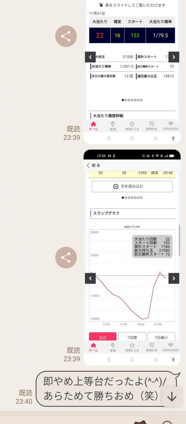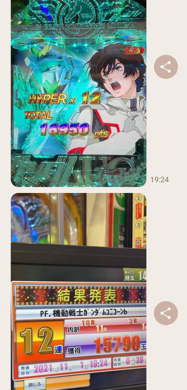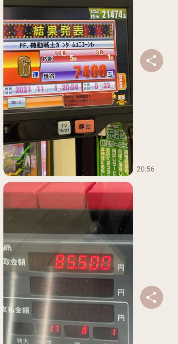 平日のホール閑古鳥の中 出る台あるんだよねヾ(´∇`)ノ 1パチスタートするも 5000円使って回らないし 4パチの方が回るしやめ 相方とある1パチ遊タイム狙いしてたので 私はお先に4パチへ 無事遊タイムいくも 投資7000円で出玉5000発 私の隣りに座ってつーポチ ラッシュ入るもスルー しか~~~し! 4パチ出玉内で 2撃2万発ヽ(≧▽≦)/ヤター! 即やめ上等してくれました(*´ω`*)/