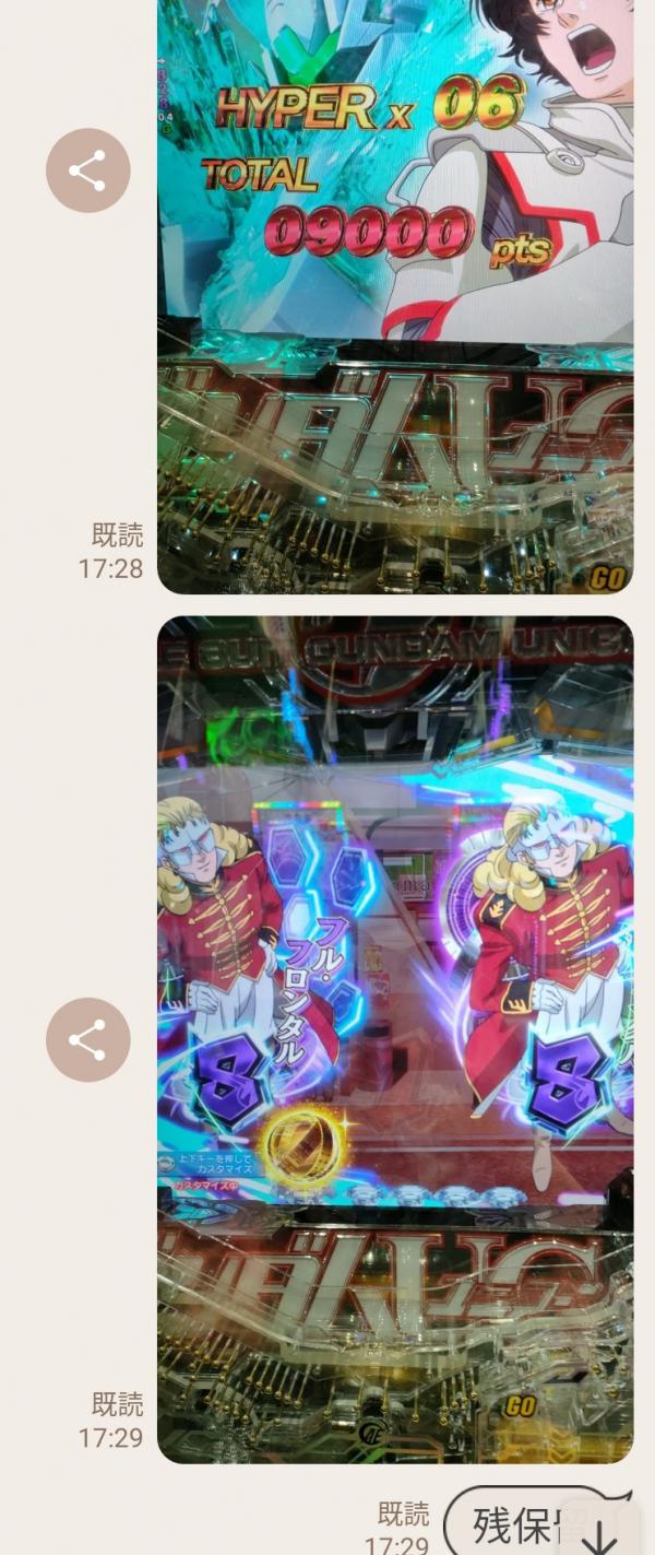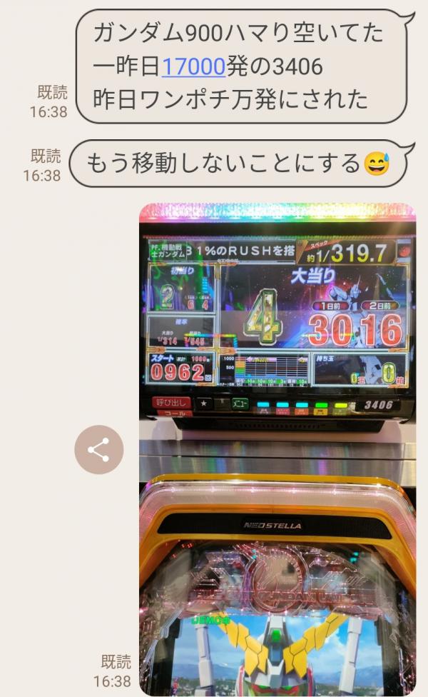 土曜日仕事帰り 無双とガンダム満員御礼で 源さんスタートするも3000円で つーポチずつ3台打つも やっぱり回ってる心折れてやめ台探しに ガンダムしまを徘徊してると 900ハマり空いたので 回してみることに 総投資19000円で ブルってないけど当たり(≧∇≦)/ 残保留で3回目のミネバ全回転にヾ( 〃∇〃)ツ 即やめ上等したけど やめると大してハマらず 当たりを引かれてプラス4000玉にされたけど 無双で4000発出したから トントン 無双即やめして ガンダム徘徊 残りカードで気になった台打つも 当たり引けたけど通常セグに (´・ω・`)ガッカリ… ラストの当たりは 気持ちよく連チャンして欲しいわ(−ε−*)