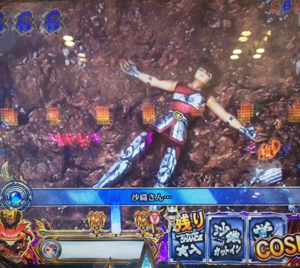 まず、シンフォギアに10,000円入れて、 ノーヒット 次は聖闘士星矢で… ↓[VS]サガで早々に当たるも単発…