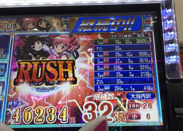 12連で8,000発ほど出ました。 ギアスのライトミドルは先客あり… 昨日、30回当たり(初当たり4回)のまどか☆マギカが目に留まり… わずか10回転で当たり[熱] ↓ラッシュ突入
