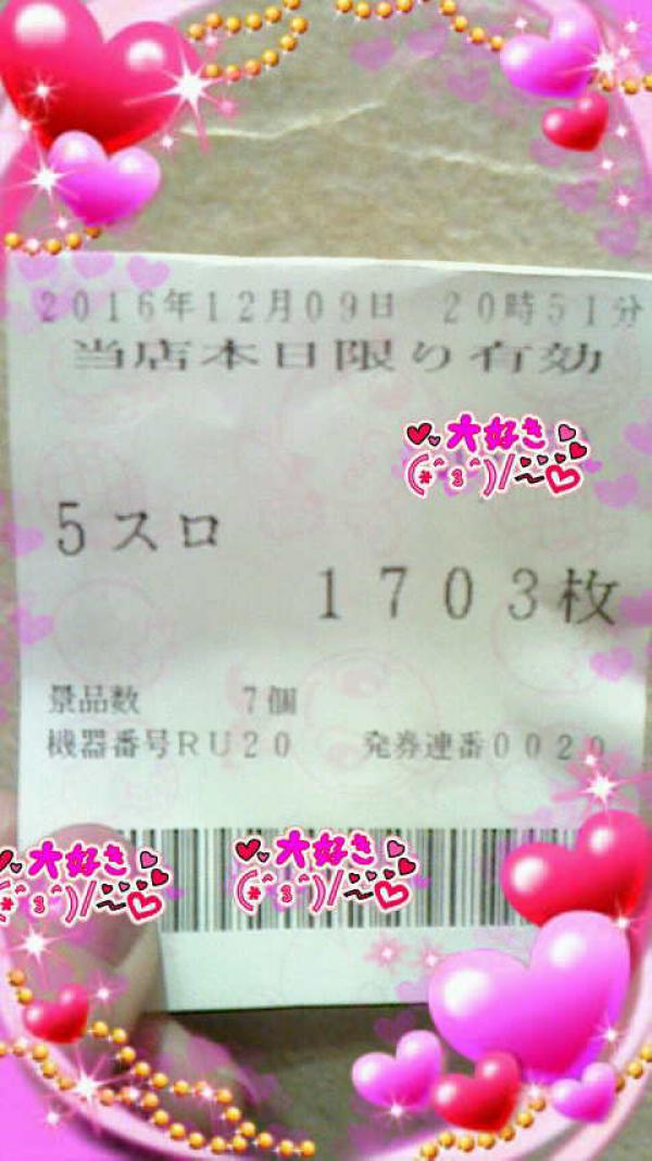 1703枚(笑) 子役の出方と、キュウベェボイスをトータルすると… 設定4?か設定2だったかな? 今、思い出した事が ビーチバレーの写メの前に、 ほむらの【忘却の魔女】があったんだわ そうそう、 それが、ラッシュになったんだわ(笑) 写メ撮ってなかったから、忘れてました 諦めな~い のBGMを聴いてると… 顔がニヤケて打ってしまうのは、私だけかな? 可愛い過ぎる~ その後、1パチのお祭り仕事人を打って、12000発出たのは、内緒だよ(笑) 皆さん 楽しいパチライフ&スロライフを過ごしてね (*^_^*) また、ログ書く時まで… ごきげんよう m(__)m