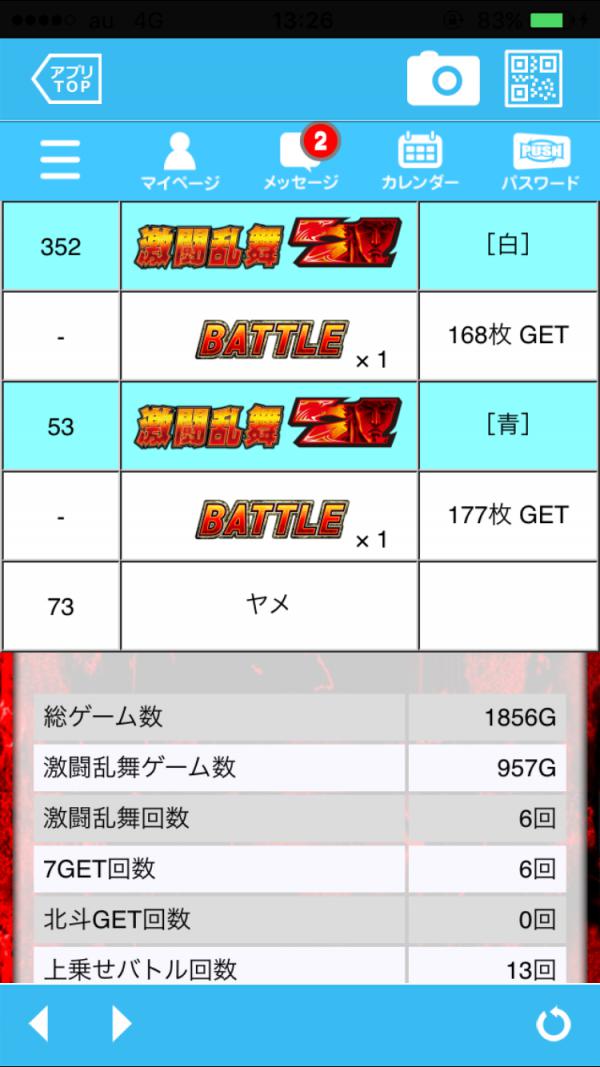 352[的中] 強チェでジャギ50乗せただけの 単発 弱ちゃめ 強スイカ マミヤ同行 ジャギステ移行 ランプ矛盾確認の 強スイカ リールフラッシュ役物シャキーンと vsジャギ勝つ 53[的中] 即30乗せも… 単発(*_*) 弱チェ 弱スイカでラオウステいくもスカッ 73止め 初当たり 1/149 ハズレ 1/27 レア役合算 1/45 AT高確スタート確認出来ず(・∀・) AT後高確スタートもたぶんなし(・∀・) 満足出玉獲得にて今日のところは こんくらいにしといたる止め(笑)