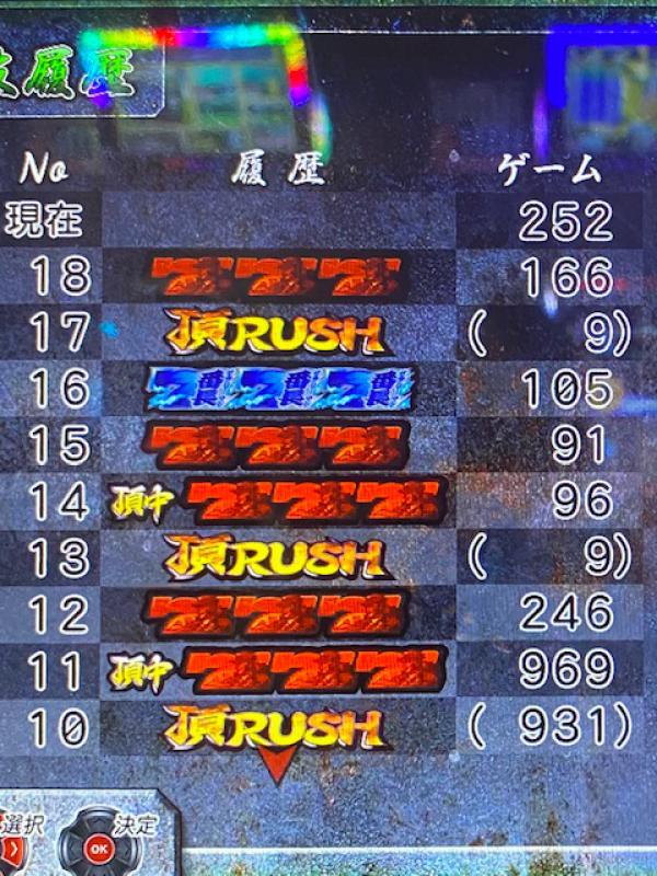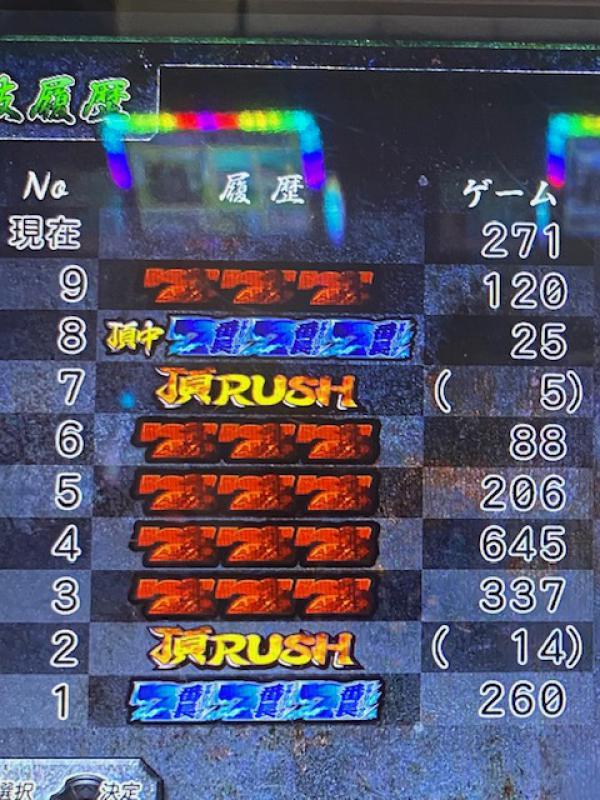 ちょい勝ち 今日は 7の日でまずGOD(笑)←相変わらず怖いもん知らず ハーデス無くなった分凱旋増えたし これが200枚で当たって4連1200枚ほど出たけど 半分減らして止めて 7の日なのに最初ガラガラやった 0当たりなし天昇へ(野生の勘w) するってーと 運良く最初からラッシュイン