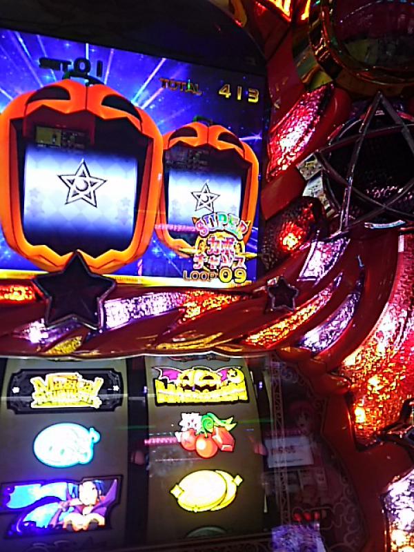 中チェきました。 カボチャン中のこの演出アツいのでしょうか? 投資 9K 回収 約 2000枚 6枚交換にて 35.5K 26.5K 勝ち ※約7000回転で ボナ合算1/140 51回 リプレイ レグ 2回 単独異色ボナ 1回 あと どれか忘れましたが 弱チェボナの数回ありました。 上だったのでしょうか? お疲れ様でした。 まだ 前の稼働のがありますので よろしくお願い致します。
