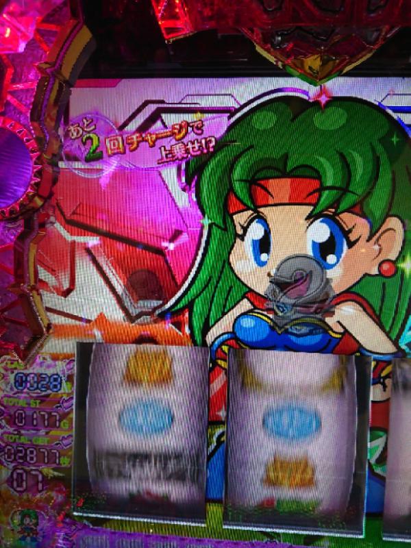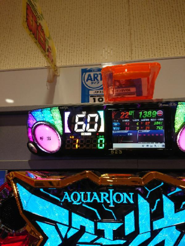 本日仕事休みでしたので、午後から家近くホールへ 最初 初代まどマギ 頑張りましたがダメ -47k 次アクヱリオンへ 1383Gでおそらく 据え第2天井で当たり 投資32kから頑張りました。 途中夢夢ちゃん