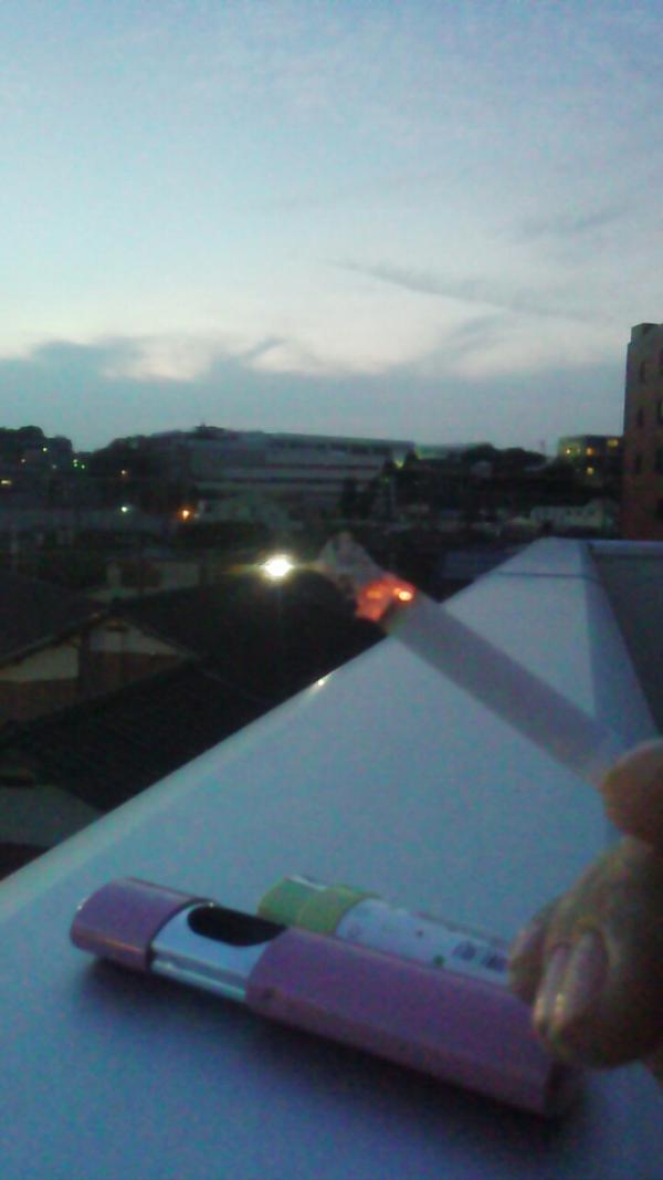こんばんは(*´ω`*) れみです( ´艸`) 夕飯の支度前の一服( ´ー`)y-~~~ 自宅の屋上でつかの間の一服(*´ω`*) 短い時間だけど、暗くなる瞬間を 見ながらの一服… 結構、お気に入りの場所(´ー`*) 結構、さて、これからご飯の支度、すっかな~ ちなみに夕飯は「手巻き寿司」です( ´艸`) あ、最近あまりサイト来てなくてゴメンね(^_^;) また時々、板にでも顔出します(*´ω`*) では、またね(*´∀`*)/