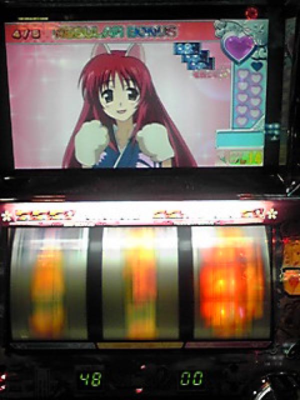 と、言う訳で、前記事通りタマ姉をデートに誘いに行って来ました。 …が! 既に他の方がささらとデート中の為…アイマスへ。 結果から アイマス4K ケータイ少女3K(約800枚) この辺でトゥハート2がに移動。 総回転数1912G Big10 REG4 初当たりART3回 1547枚 見ての通りボーナス確率がおかしいです。 こんな軽いトゥハート2は初めてです。 ( ̄▽ ̄)イツモ500ハマリハ普通ダシ、1000Gデボナ2回トカザラデスガナ~。 続けたいのはヤマヤマですが…夜勤の為、終了。 と、言うか、3連続ベルが一度も引けず、REG中もメインキャラのみの為判別不可能でなので終了と言う訳でもあります。 アイマス、ケータイ少女共に中間ありそうな感じだったんですよね~(ちなみに、ケータイ少女はフリーズBig引きました、その出玉でトゥハート2を打ったんですわ) 総投資7K 回収7K …キリトリ… 珍しいので撮りました。(REG中のコスプレ…ハズレましたが何か?) (-"-;)…