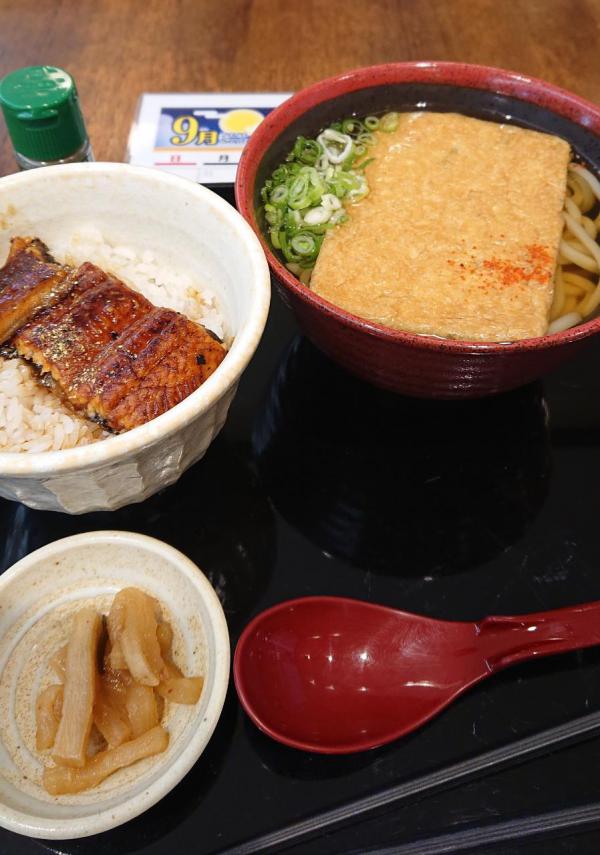 今日の晩ごはんはきつねうどん&ミニうな丼のセット(´▽`*)アハハ