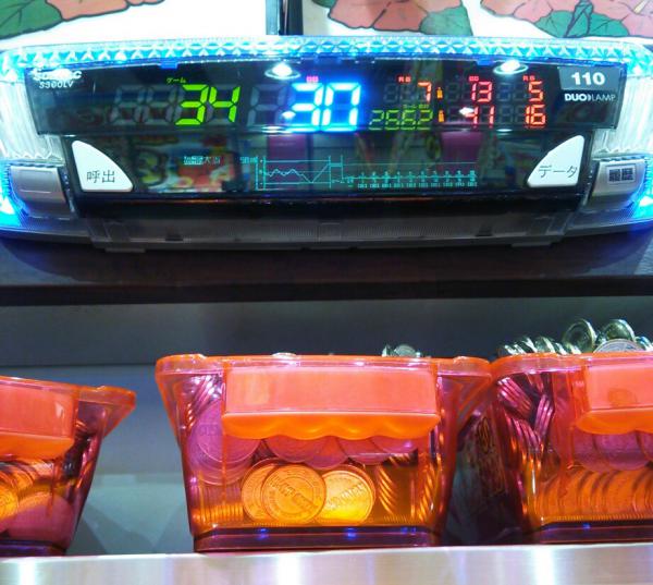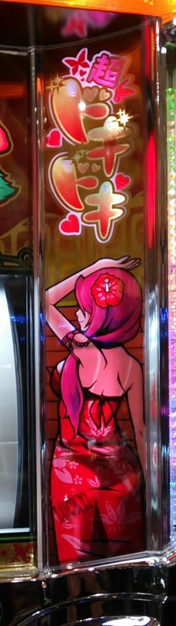連荘終わり後、昼休憩を入れ、目を休めるw 連荘即やめの後最近けっこう出ていることが多いので、試しに今度は次のあたりを目指してみるw 100・・・・まぁ、そんな簡単にはね・・・ 200・・・そろそろ当たらないかなー引き戻しは否定された@@ 250・・・メダル500枚以上減った・・・ 300・・・キィーーー!!もうやめるーーーw ということで、300までまわしちゃいました^^; 1400枚ほどカードに入れ、次の台を探す・・・ そこそこ当たりがついていて、グラフ下がりの台が目に止まる・・・ 過去 連荘後 116Gバケ 451Gバケ 12Gビッグ(←この当たりがもしかしたら通常での当たりでは?と読み、天井覚悟で勝負!) 600Gで台は空いていた・・・ 400枚投資したところで遅れから光った!! 772Gビッグ♪やったー^^ これがビッグウェーブをもたらしました!! 4連荘目にリプレイ当たりからなんとドキドキランプ点灯!!びっくりした!たぶん3連荘目でスイカ解除で当たったのが昇格したのかも^^