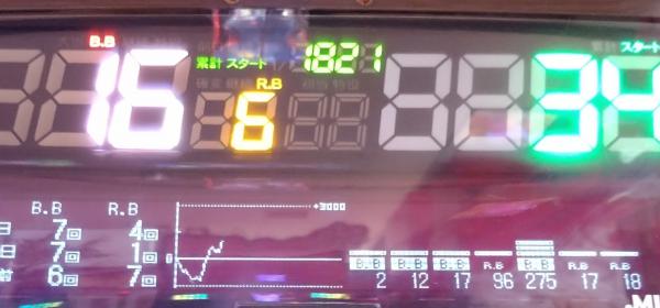 見事このドキドキで14連達成!! B9 R5 最後ビッグだったら完走だったのにやっぱり寸止めされた。枚数管理されてるのか!? 約1800枚! テーブルはやぱり6のAAAAFだった! ここまで25k投資(1250枚)プラス域だ! 実は今日は友達と連れうちだったので、まだ友達のほうはすぐには終われそうになかたので、少し様子見・・・ すると・・・ 275B・・・スルーだったけどここでドキハナきた!びっくりした! しかし失敗・・・ シーサーは右点滅だったので、偶数濃厚! 天国準備の可能性あり! 次の当たりを目指す!! 深くならず 96R・・・シーサー左!? あ、これは矛盾できっと上がってるぞ! やはり天国飛び! 抜けてもドキハナのチャンスありだ!! 17B 12B 2B ドキハナはなかったw B3 R1 の4連!! 約600枚 少し上乗せできた! テーブルは14のAEでした! ここは勝ち逃げ発動! 34でヤメ!