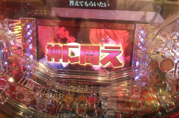 神に問えリーチ赤文字 体感的には甘デジなら80%は当たりを確信♪( ´▽`)