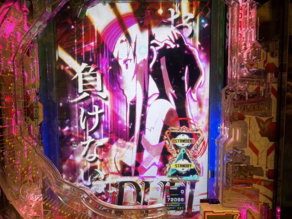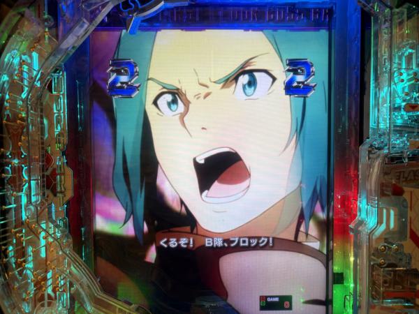初当りの「血盟DUEL BONUS」は319ver.同様、キリトが勝利すればRUSH突入となるのですが、アスナがキリトを見守る様子が描かれています。 ・白の輝き予告