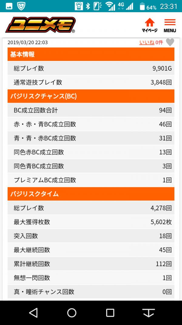 これはこれで出過ぎで気持ち悪いw まぁ前回と合わせて20000G以上回してるから 2回分でちょうど機械割くらいは抜けたかなと 思ったけどまだ足りてなかったw でも私が絆でこんなに出るなんて奇跡なんで まぁ大満足です(・∀・) こんなに出てるのに死にそうな顔で 打ってたのは内緒(自分では気付いてないけど常連の人に言われたw) やっぱ絆つまらんわ(__)