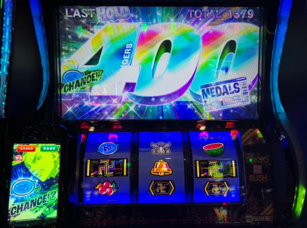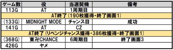 リベンジ成功じゃい!!ちなみに、最終ゲームにリプレイを引いていました。さてと、ここからは純増約8.0枚/Gの上位ATです。