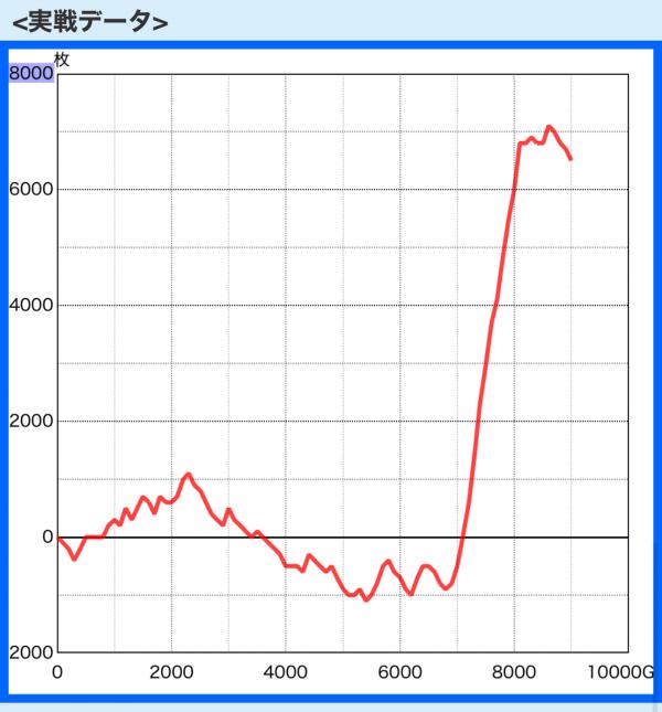 結果は8000枚オーバーの出玉を獲得して終了!上位ATは最終的に16セット継続してくれました。引き戻し期待度約80%でこの結果は上出来すぎでしょ!