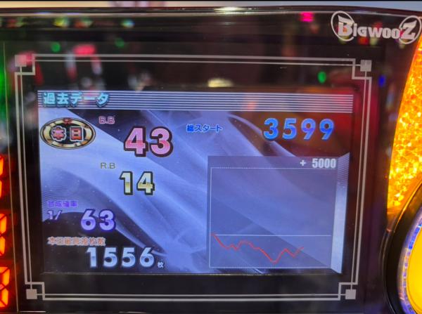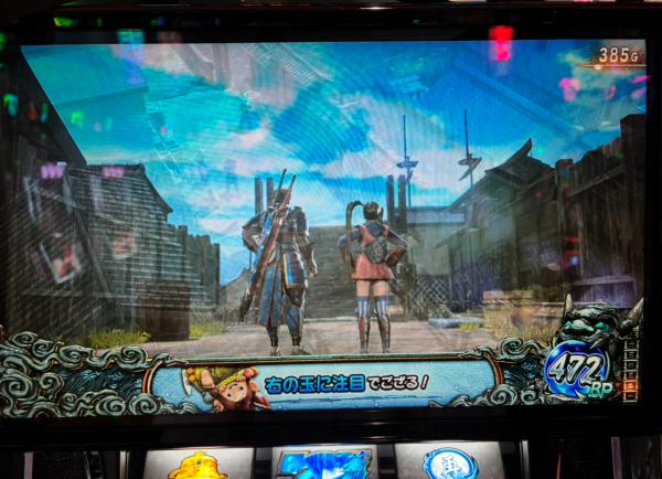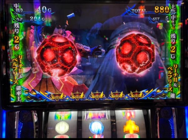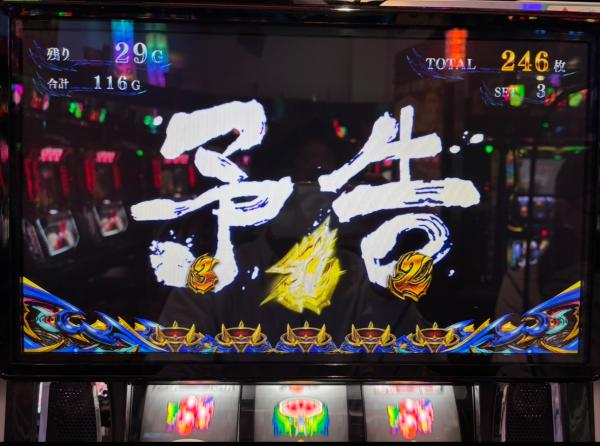 右の玉の色が青に変化しました。試打した時にはなかった挙動です。色が変化したということは何かしらを示唆しているのは間違いなさそうなので、その後の展開に注目していこうと思います。