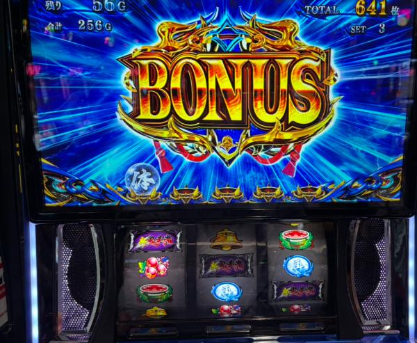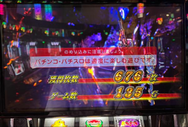 2セット継続で終了。連チャンはショボかったですが、ボーナスをそこそこ引けたおかげで約650枚の出玉を獲得できました。