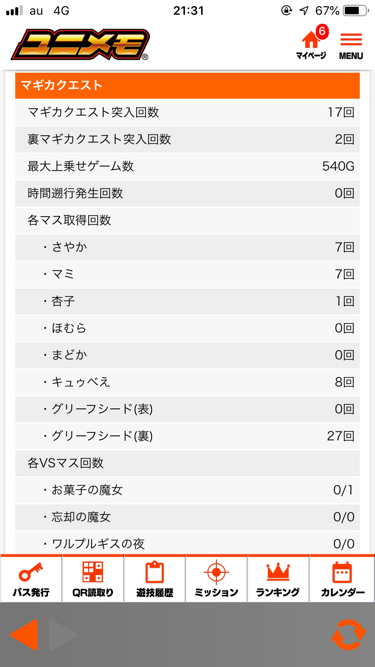 結果はまあ、よし! 16戦して時間遡行0だったのは 少し悲しかった( ´・ω・`) そして 80以上の示唆が出てから かなり回して やっとこさ穢れ解放。 はあ、やっと解放か、 良かったぁと思ったその時! ほむエピか?裏ボか?? ドゥーーーーーーーーーーン! パネル消灯!! 画面は黒! マギカクエスト 超野太い声で ううっわ!って出ちゃいました(笑)チャンス目Bを引くも ボーナスは付いてこず 結果は↓そして ART中にレバーオンで いきなりぬいぐるみをGETせよの演出。 ???となりましたが 結果はボーナスでした(笑)ぬいぐるみ2つ(笑)杏子可愛い(´へεへ`*) そして長いARTも終わり大満足の結果!弱チェ結界、直撃、謎cz セリフはどんな未来が3回 君にならが3回 弱チェもよかったので ガチで6あるんじゃないの? とか思ってましたが どうでも良くなりました(笑) 投資700枚 回収4372枚 あと残すはほむエピのみ!(笑)いまから 今日沖ドキで3000枚出してたへむらっちと 飲んできまーす☆