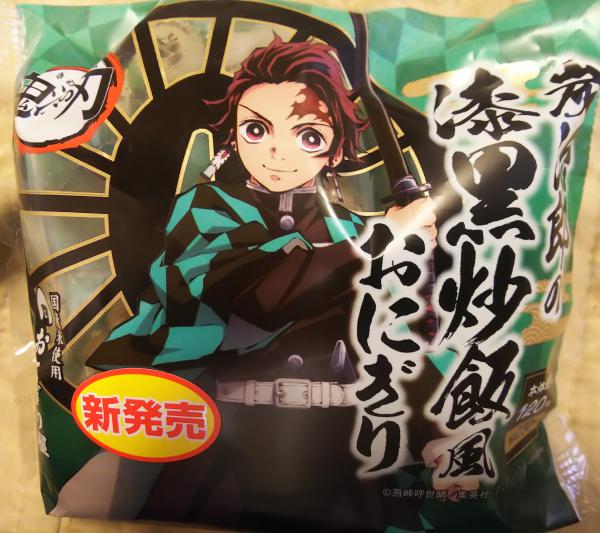 LAWSONで見つけた「鬼滅の刃」のおにぎり(^q^ 漆黒炒飯風おにぎり おにぎりが、「鬼切り」だと、面白いだがf(^_^; パチかスロで出るかな?