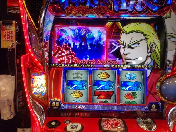 今日はサラリーマン番長2を朝から8時間勝負しました。 初当たりは34回転でラッシュ直撃でした。 トータルは、4800回転回して、BIGの表示が23回、BARの表示が18回になりました。 プラス1700枚くらいになりました。 今日の当たりはほぼ500回転以内でかかりました。 中間設定か設定4かな? いろいろ写真撮影出来てよかったです。 プレミアの五右衛門?見れたからいい日になりました。