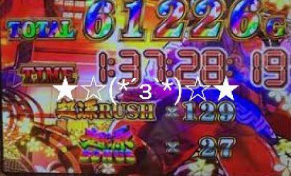 記録更新(o´∀`)b 店員さんに悪いし 『もう、これ打たないから、直していいよ(^^)』 台は、即座に電源落とされ 故障札張られたのでありました〜 韋駄天に限り 負けなし 演出も、多分に全て見た(・∀・)もう満足っす♪ その後…… 殿様に報告 あっ、弟は他に行って別行動(^^) 苦戦しながらも 隣打てとコインよこして来たから 並びで打った(^^)(^^) 150枚ぐらいで当たり ビッグ消化後 1ゲーム フリーズΣ(・ω・ノ)ノ