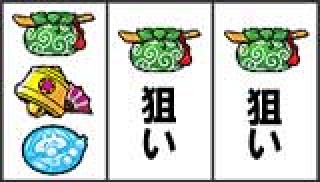 通常時 通常時に目押しが必要な小役は風呂敷・1枚役だが、回転効率を優先して風呂敷狙いのみでOK。 左リール枠内にBARの下に付いているチェリー狙い 風呂敷出現時のみ、中・右リールに風呂敷を目押ししよう。 それ以外の停止系は適当打ちでOK。