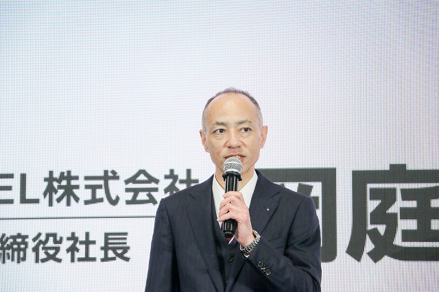 発表会ではPV放映後、まずはDAXEL株式会社を代表して、同社 代表取締役 岡庭社長が登壇しコメントした。「DAXELの自社ブランドとして約8年ぶりに新機種を発表させていただきました。8年のブランクにて様々なものを刷新して、データやユーザーから支持される出玉バランスなどを考えて制作してきた。サミー様とのタッグによって、持てるスキーム、ポテンシャルを最大限引き出して作り上げた一台になっております」と本機について自信をのぞかせた。