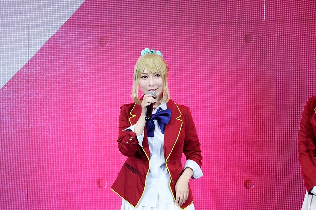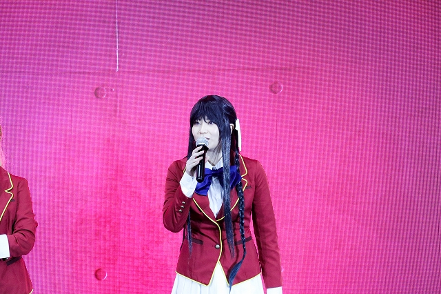 本日の発表会を盛り上げるべく、水樹あやさん、黒瀬るいさん、アニメ版権に定評があるティナさんが登壇し実機試打を交えながら機種説明などを行った。水樹さんと黒瀬さんは版元のKADOKAWAさんより借りたというコスプレで登場し、会場を沸かせていた。