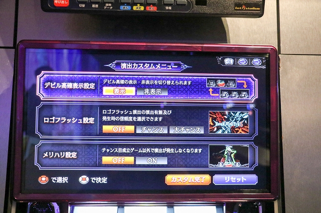 特徴が伝えられた後、ゲームフローも明らかになった。ゲーム数・CZ・小役直撃にてST当選を目指していく。CZは異なる3タイプのゲーム性が用意されており、「NERO」は期待度約40%、狙えカットインが3回保障となっており、演出成功でボーナス当選。「V」は期待度約41%、継続G数5G+αで展開し、小役成立で5Gが再セットされるSTタイプ、ライフを0にできればボーナス当選。「DANTE」は期待度約70%、リールロックが覚醒のチャンスとなっている。