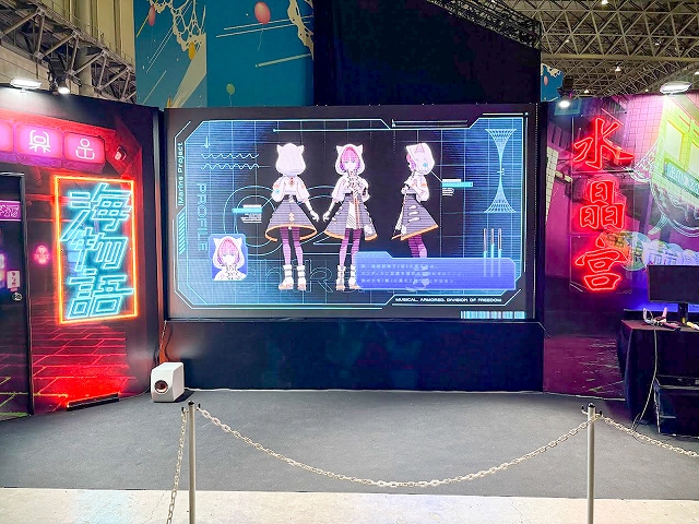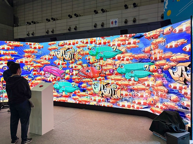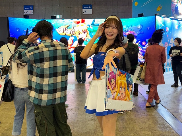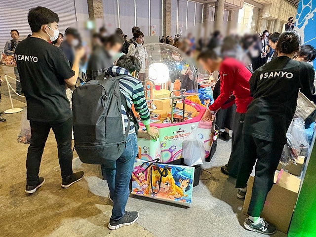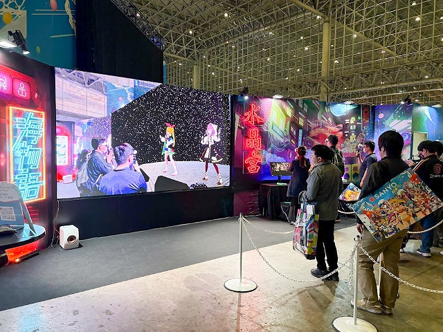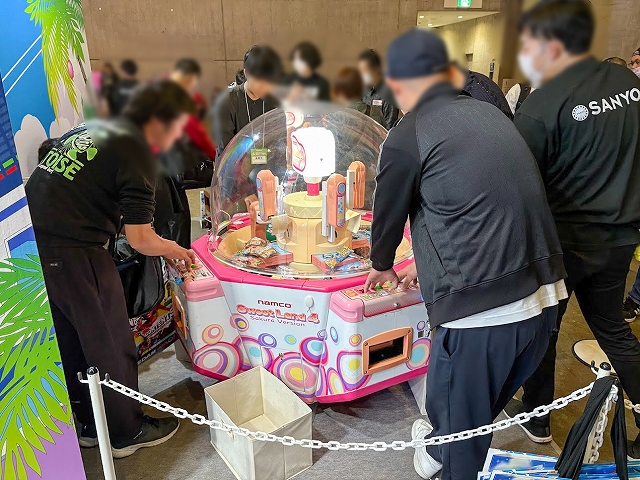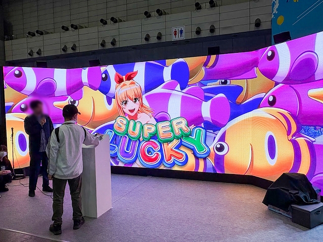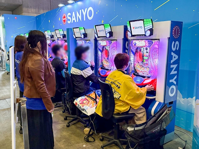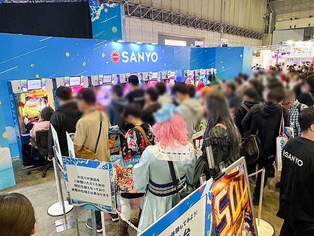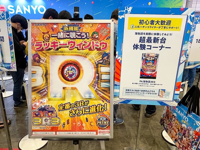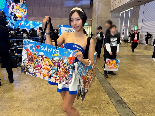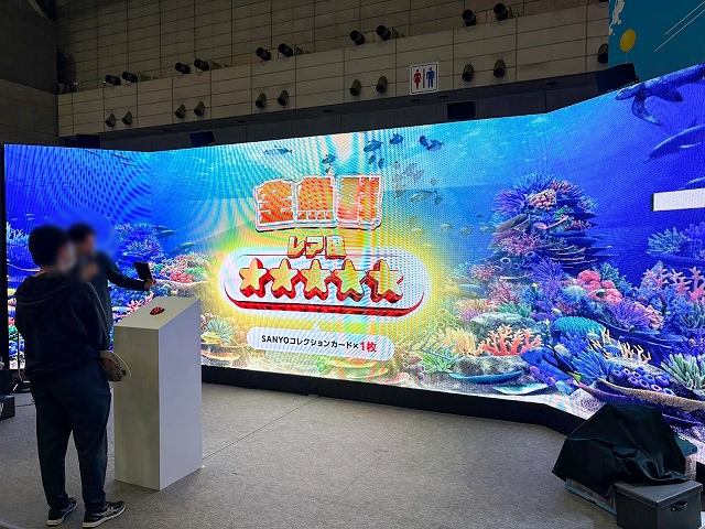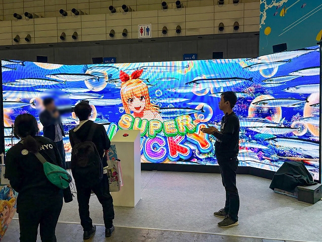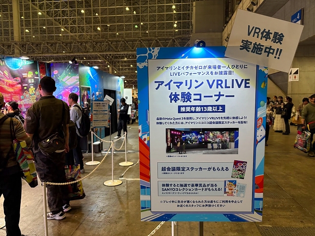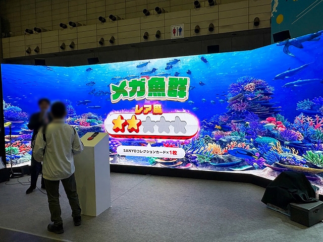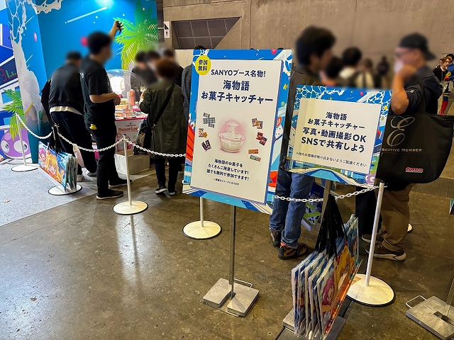また、ステージ以外にも様々なコーナーが展開され、SANYOブース名物の「海物語お菓子キャッチャー」を始め、超大画面で魚群演出を体験できる「100倍魚群チャレンジ」、最新のVR機器Meta Quest3でLIVEを堪能できる「アイマリンVRLIVE体験コーナー」、同社の最新機種が楽しめる「超最新台体験コーナー」が用意されていた。