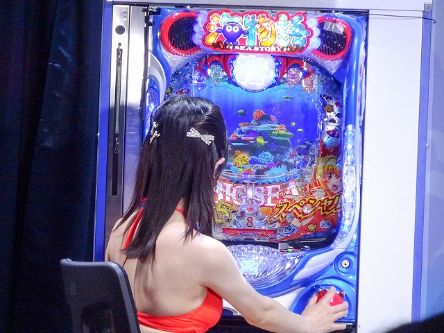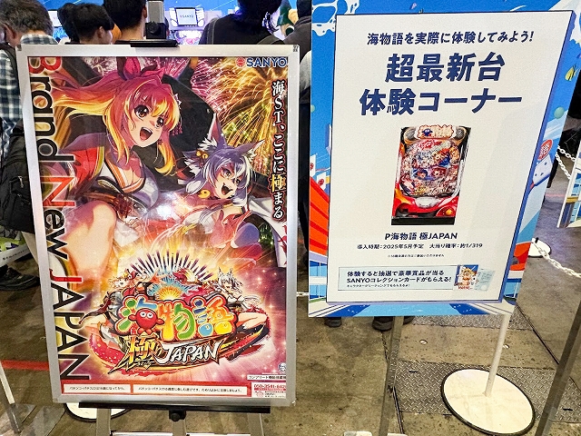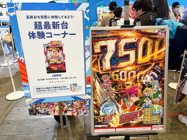 超最新台体験コーナーには、「P海物語 極JAPAN」「PA海物語3R3」「e冒険島」が設置されており、いずれもホール未導入機種ということもあり、終始長蛇の列ができていた。