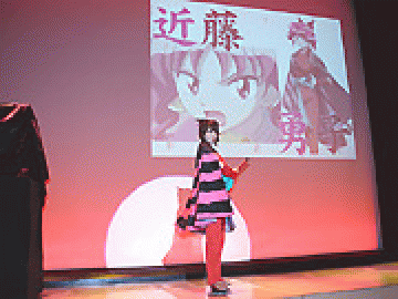 発表会の司会を、講談師「日向ひまわり」さんが務めた。聴き心地の良いセリフ回しで、「萌えよ剣」の世界観を読み上げる。