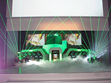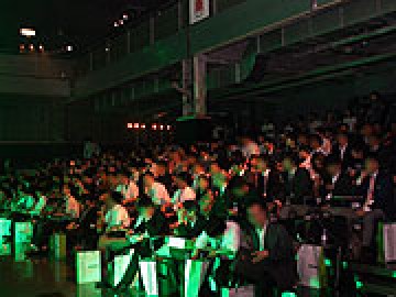 挨拶の後には明かりが落とされ、新機種のお披露目が行われた。
