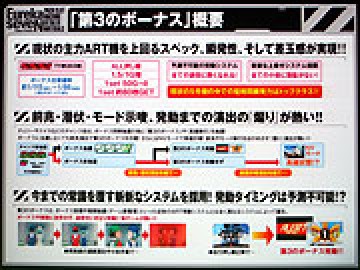 メインコンセプトとして挙げられたのが、「第3のボーナス」。「獣王」の完全サブ管理ARと「アラジンA」の目押し不要システム、「北斗の拳」の前兆演出が組み合わさったARTとなっている。