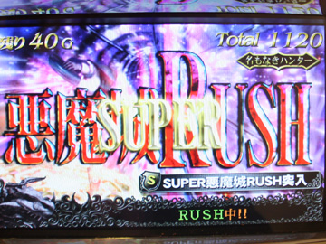 新たなARTゲーム数上乗せ方式「悪魔城RUSH」を搭載。パチンコのSTのような10Gの上乗せ特化ゾーンで、10G中に1/10の確率で成立するBARが揃えばゲーム数上乗せ+再度10G目からスタートとなる。