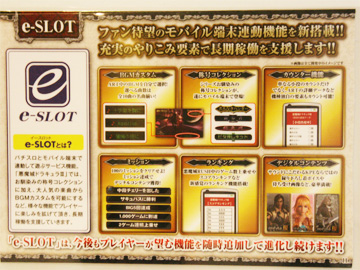 さらにKPE初となる携帯連動機能「e-SLOT」を搭載。ミッション・称号コレクションなどのやり込み要素やBGMカスタムなどが行える。なお、ホールへの導入は2012年1月下旬からを予定。