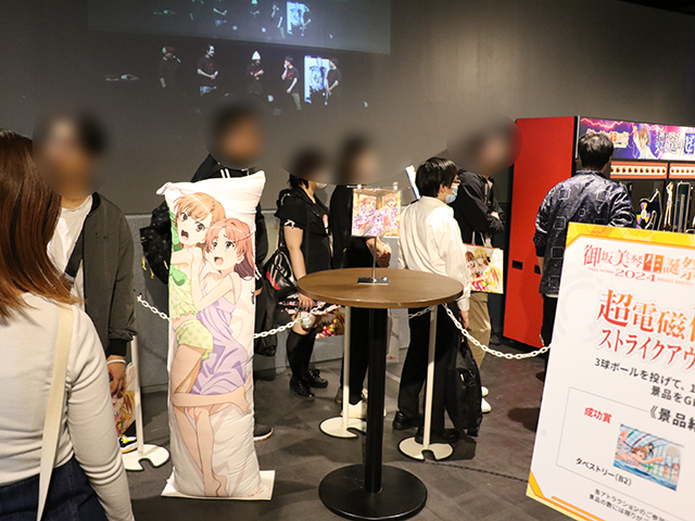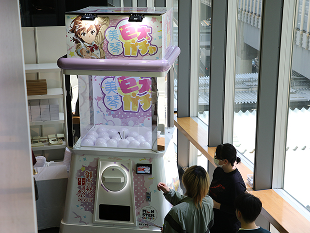 美琴巨大ガチャや今回のためだけに用意された特別デザインとなる御坂美琴生誕祭2024フォトスポットがお出迎え。等身大の御坂美琴アクリルスタンドと共に写真撮影が可能となっていた。また巨大ガチャはアトラクションスタンプラリーで2つ以上獲得すると参加できるコーナーとなっており、多くのユーザーがスタンプを貯めて参加していった。